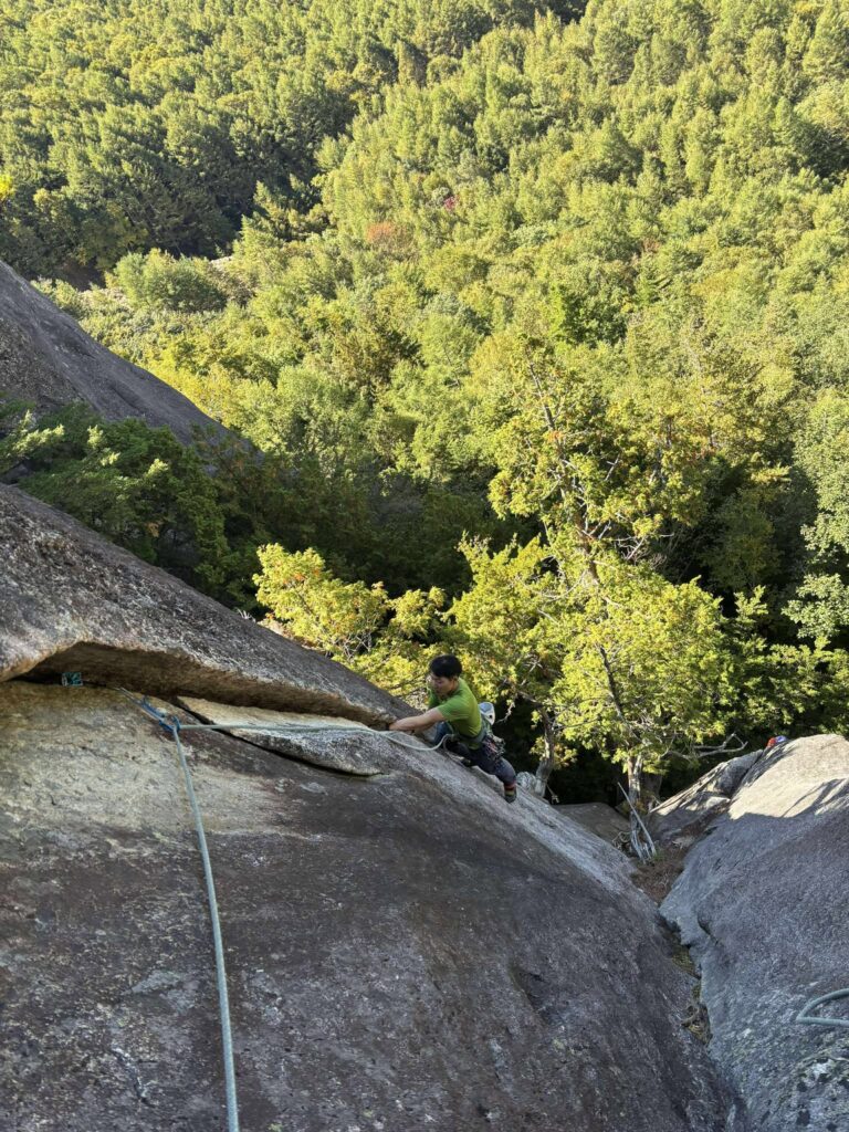 いずれのピッチも5.10aとなっていますが、1ピッチ目のほうが渋くて登りにくいでしょう。ピッチ間のコントラストも魅力になっているので、ぜひ両方やってみてください!