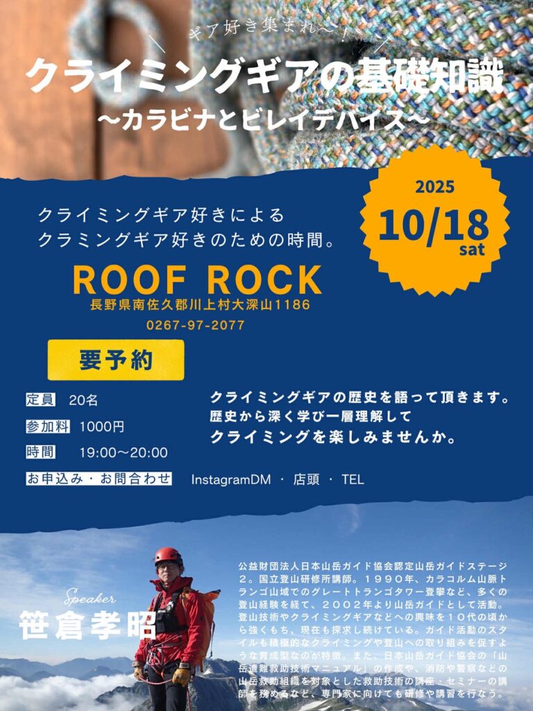 10/18(土)笹倉さんによるクライミングギアの歴史と基礎知識講座